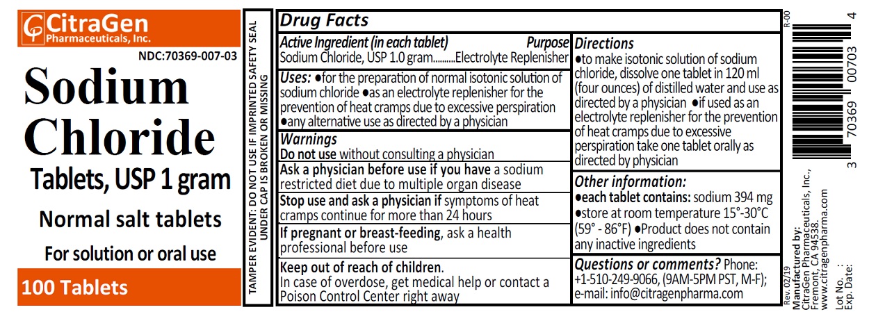 Sodium Chloride Tablets USP, 1 gram (1000 mg) |
